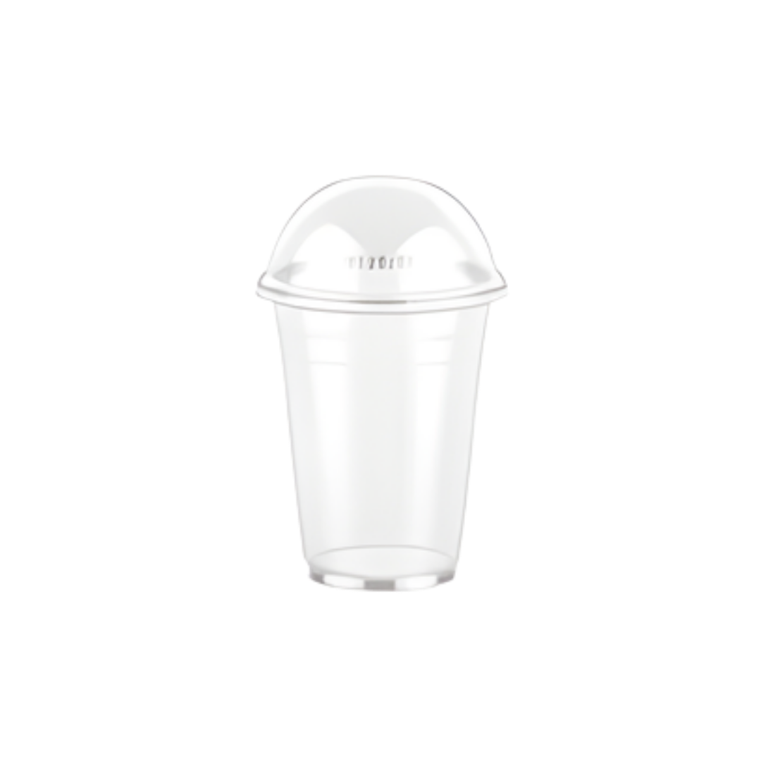 أكواب عصير بلاستيك شفافة بغطاء قبة، مناسبة للمشروبات الباردة وتقديم العصائر والسلاش، عملية وخفيفة للاستخدام التجاري.